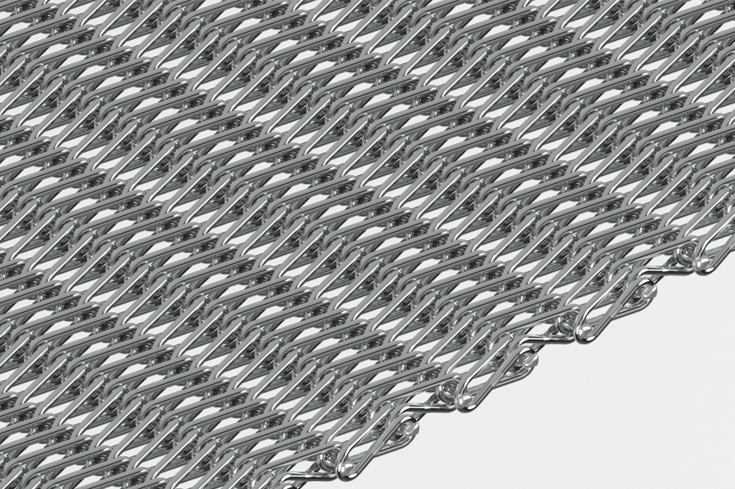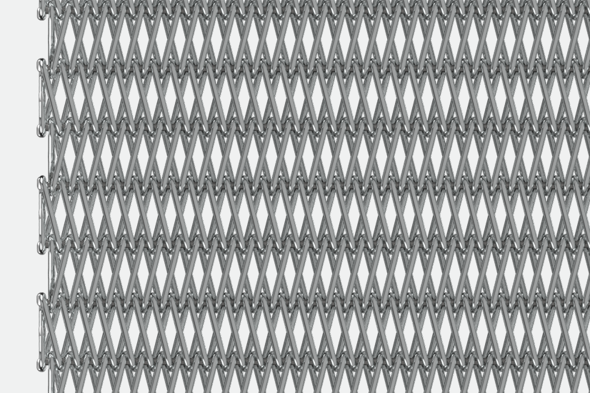 Le tapis transporteur VICO-AD est constitué de doubles spires à torsion alternée (une à droite et une à gauche) reliées par des tringles droites ou ondulées. Il est classé en fonction du pas et de l’ouverture interne des spires, du diamètre du fil et de la tringle et du type de bordure.